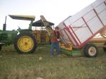 The corn I was in was running around 175 bushels per acre - best corn I have ever had! The flare wagons hold about 80 bushels of ear corn/160 bushels of shelled corn each. The barge box holds about 100-110 bushels of ear corn/200-220 bushels of shelled corn. They are handy to have around but don't get used very much any more - too small for today's large combines. I just keep them around for stuff like this.