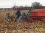 I had a part load of ear corn left that wouldn't fit in the cribs when I picked corn earlier this fall. So I got out my John Deere 43 corn sheller, set it up and shelled the corn on the wagon. Worked great! I sure wouldn't want to shell thousands of bushels like this, though. I bought this sheller over 10 years ago and had not used it until now.
