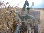 The corn was pretty wet, it needs some fairly dry corn to run thru to shine things up. But the corn in the wagon was pretty clean, it did shell some on the snapping rolls, but it wasn't designed for this high population corn today. We had it hooked up to a JD 70, but low was too fast, so they put it on a 770 and got along better. Then Sunday, I hooked onto it with my 1850 and ran it. It generated a lot of interest at the show, many people said they had never saw one before. Chris