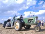I haven't taken time to post and it's raining out so here goes. I stumbled across a Oliver 2 row pull type 73-S in a shed out by West Branch, Ia. and was able to buy it. Previous owner helped me get it out of the shed it was in for 20 plus years. I borrowed a tire off of a guy in the tractor club I belong to to get it pulled home( about 50 miles). It was 1 week before our clubs working fall show. I washed it and greased and oiled the chains and turned it over a little bit and everything worked. I had to find 1 belt for it. I pulled it behind my 1850 68 miles up to Atkinson, Ill. to the show(3hours and 55 minutes). I was busy helping with the show, so Kevin Larkey, Jim Thurnau and John Swanson took it to the field on Saturday and ran it for a while. I finally got to run it for a wagon load on Sunday before it rained. I finally got it drove home and need to make shed room for it. Trying to figure out how to get it to Mt. Pleasant next June for the Oliver show. Chris