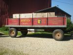 I did it again! I was at a local farm auction and bought a 7'x12' Heider barge wagon on a 8 ton MN running gear with a midwest hoist. I started the bidding at $250 and nickel and dimed it up to the hammer, $600. The box is in good shape---the wood needs a treatment of stain or varnish and the metal needs to be cleaned up, primed, and painted. The MN gear is tight!! One "balding" implement tire but the other three are in real good shape. This is the 3rd Heider barge wagon that I have seen this late summer only bring $600-$625. Is the barge wagon market softening?
