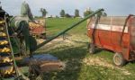 Now for cob wagons - I have used most anything that will hold cobs. The last few times I shelled, it depended on what the person who was getting the cobs had to put them in. If you look thru my pictures, you will see a Rhorda wagon, an IH manure spreader, tractor loader bucket and several different brands of flare box wagons (my favorite). The flare boxes are what we used at home when I was growing up (Nu-Bilt/Lindsay boxes). They were easy to fill and the whole back end opened up and was held open with prop irons so they were easy to dump out.