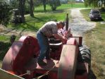 After months of searching, a few hundred miles or so, a couple of what the "hells" was I thinking, and more rolls of the eyes from the wife than I can count, my IH 234 picker is mounted and operational. I have sure learned a lot. I do have to thank my dad for a little help along the way. He is in the last picture, attaching the rope to the picker for the deflector. Now to wait for the corn to dry down so I can run the picker through the corn.A local tractor guy is coming down again this fall to pick some corn with his JD 227. So I guess I am having a corn picking days at the farm in SE MN this fall---nothing compared to the Walnut Corn Picking Days. If anyone in the area wants to come on over to pick some corn, let me know.