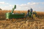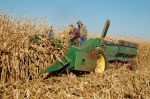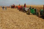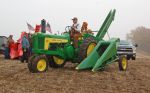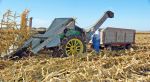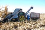 The yellow corn picker is a Oxbox seed corn picker that has a 14 row head on it , it`s a friend of mines and I had him come demo it to show the old and the new but we caught on the go with the old wagons instead of catch carts .