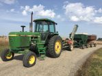 Picked a few loads of corn for the first time in 3 years with the Avco New Idea. Late model picker with 12 roll husking bed. Pulling it with 1980 John Deere 4240 Quad-Range that just turned 7,000 hours and original paint that stills looks pretty good.