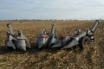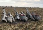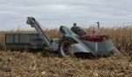 The three New Idea ear corn pickers in the collection of Don Struthers, Collins, IA, photographed after the Oct. 21st picking and plowing event had concluded. Three New Idea pickers cropped.jpg