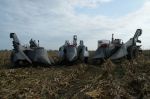 The three New Idea ear corn pickers in the collection of Don Struthers, Collins, IA, photographed after the Oct. 21st picking and plowing event had concluded. Three New Idea pickers cropped.jpg