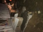 The crib is 4'-6" wide 8'tall and 20' long. By my rough calculations I figured it would hold my couple acres of corn. The first thing I decided was it needed more support as the concrete piers were 10' apart. I added support at 5' and 15' to make it support weight 5' on center instead of 10'. I dug down about 10" and put in gravel, and concrete block, then laid treated 4"x on the blocks, I had all this laying around. To save money, I cut some large white oak rounds and de-barked with a chainsaw, I placed these on top like a soda can would sit, then jacked up the crib a little and slid a oak 6"x6" beam in on top. After I got both sets of white oak center supports in , I jacked up the weight off the columns and straightened them up with a front end loader and come along / chain. After I got them more straight and upright I dug under one side and supported it with a concrete block, I repeated this around the 2 piers. After that I dug pout underneath some and formed up a footing and wider base for the old piers. I mixed the concrete from Portland sand and gravel, and filled under and around the old piers.